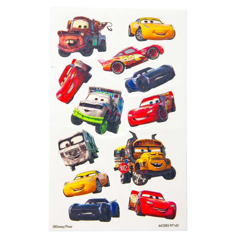 Dessa tatueringar med motiv från filmen Cars är perfekta att använda som små gåvor eller i godispåsen på barnkalaset. Ett ark innehåller 12 olika bilar, vilket ger rikligt med valmöjligheter för barnen att välja mellan. Varje tatuering är temporär och har en storlek på cirka 3-4 cm, vilket gör dem idealiska för barns små armar eller ansikten.