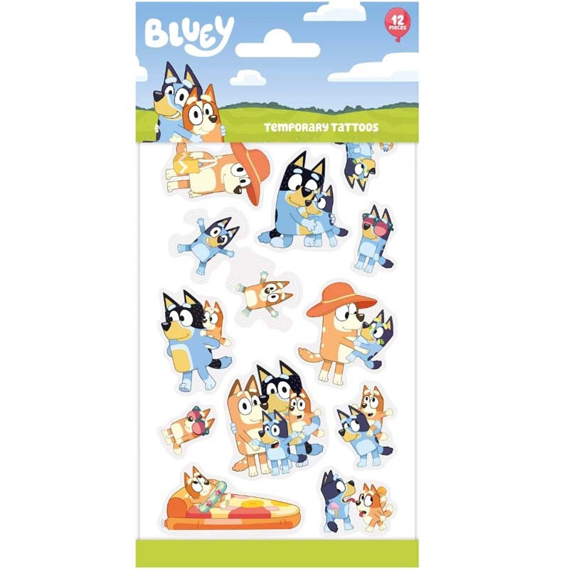 Ge barnens lek en extra dos fantasi med dessa färgglada Bluey-tatueringar! Här hittar du Bluey, Bingo och hela familjen i lekfulla poser – perfekt till kalas, pysselpåsar eller som en liten överraskning i vardagen. Tatueringarna är enkla att applicera och roliga att bära – ett måste för alla små Bluey-fans!