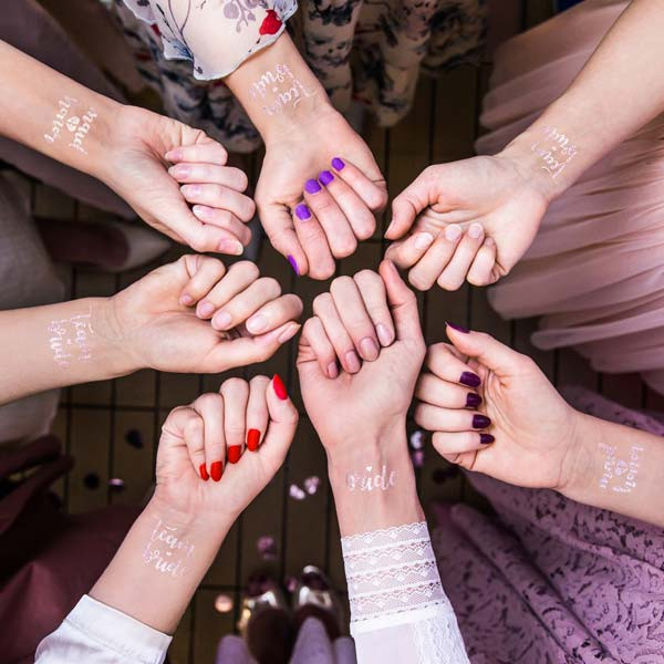 Dessa temporära tatueringar i roséguld är perfekta för möhippan! Med tatueringar för bruden, brudtärnan och övriga team bride kommer alla känna sig som en del av det speciella tillfället.