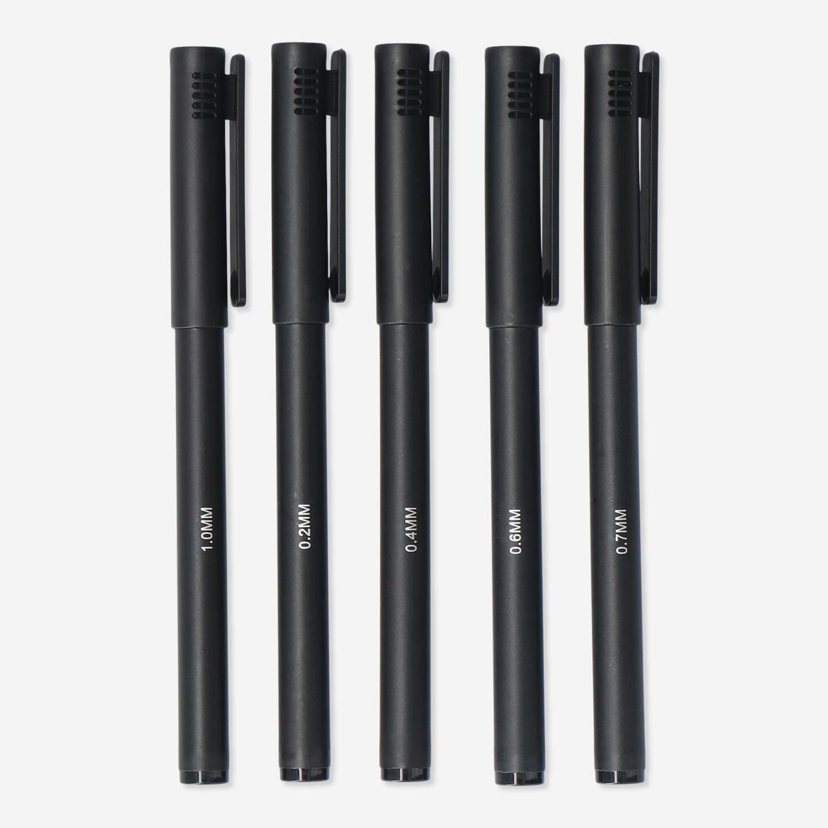 Dessa svarta tecknarpennor kommer i en förpackning med 5 stycken, var och en med olika spetsar av olika tjocklek. Perfekt för konstnärer och skissare.