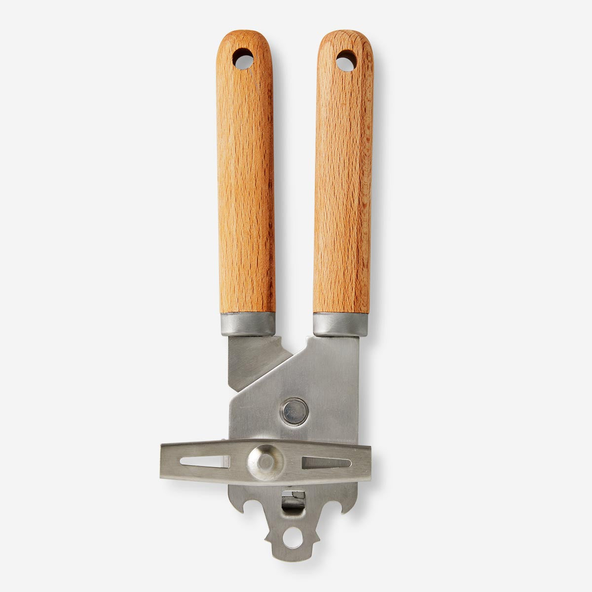 Den här burköppnaren i bok och rostfritt stål är perfekt för att enkelt öppna burkar. Med sina 19 cm i längd, är den lämplig för att användas vid matlagning.