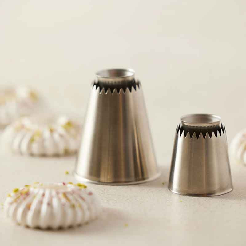 Dekorera dina bakverk med elegans med detta set av två sultan-tyllar från Blomsterbergs. Med mönster av fina stjärnringar och släta hål i mitten kan tyllarna användas för att skapa vackra dekorationer på maränger, vispgrädde, småkaksdeg och vetelängdsdeg.