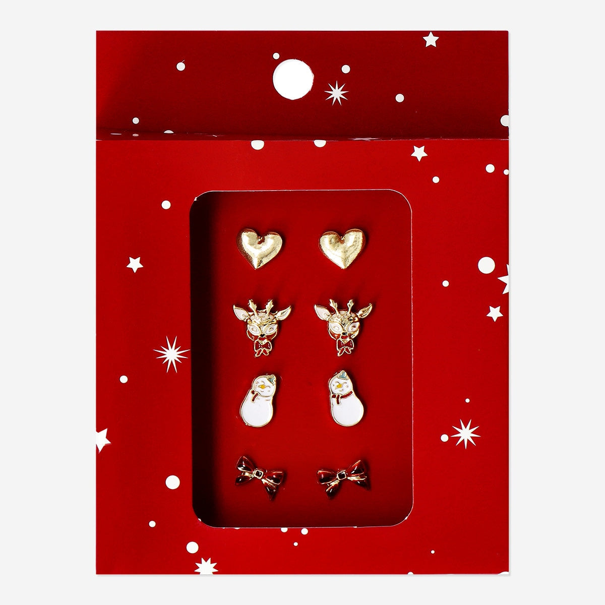 Denna uppsättning julsmycken inkluderar fyra par vackra örhängen som passar perfekt för att lysa upp din julstil.