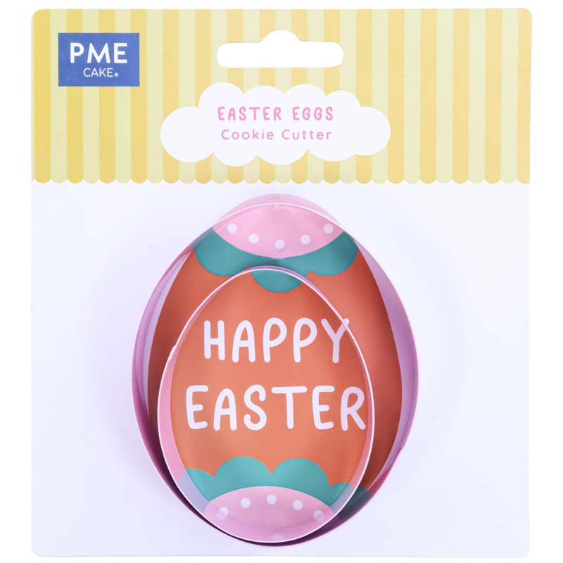 Ge dina påskbakverk ett lekfullt utseende med äggformade utstickare från PME i två storlekar. Perfekta för att skära ut jämna och tydliga äggformer i kakdeg, marsipan eller sockerpasta. Tillverkade i slitstarkt plastmaterial som ger rena snitt och gör bakningen både enkel och rolig. Ett måste för påskens alla godsaker! Motiv: Ägg Antal: 2 stycken Storlekar: 8,9 x 6,5 cm och 6,8 x 5 cm Material: Livsmedelssäker plast