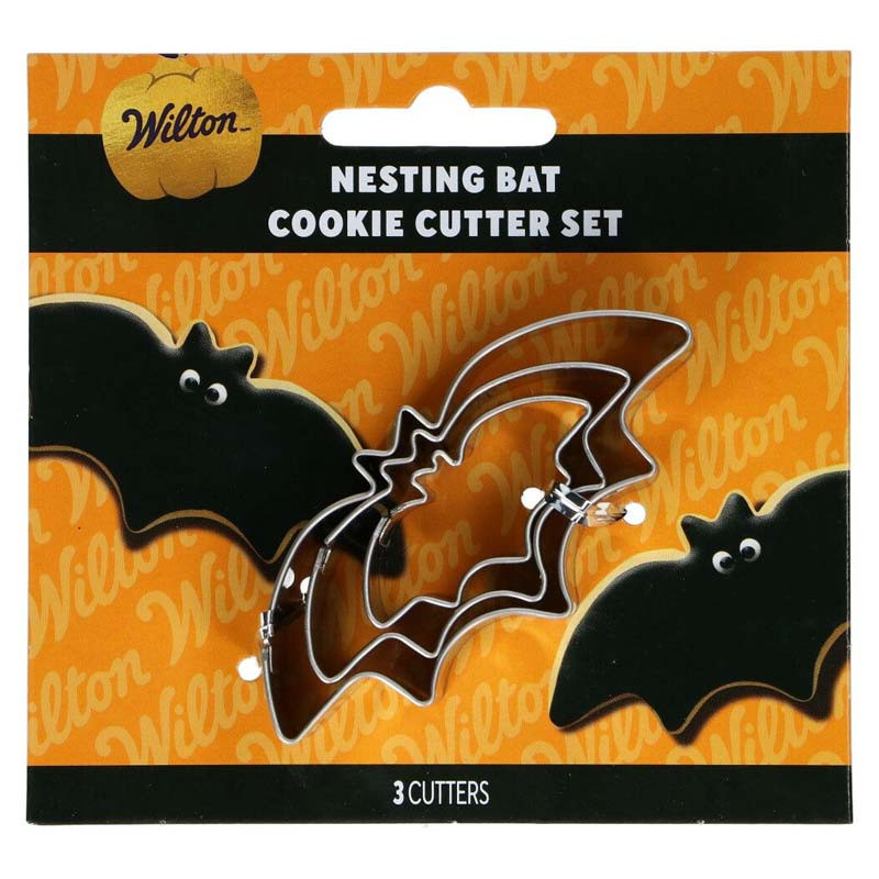 Skapa spännande Halloweenkakor med Wilton utstickarset fladdermus 3-pack. Setet innehåller tre utstickare i form av fladdermöss i olika storlekar – perfekt när du vill variera dina bakverk eller bygga upp en hel ”fladdermus-svärm” på kakfatet. Använd dem till pepparkakor, mördegskakor, muffins, tårtor eller för att forma fondant och marsipan till dekorativa figurer. Utstickarna är tillverkade i slitstarkt rostfritt stål och tål diskmaskin, vilket gör dem både hållbara och enkla att rengöra. Ett måste för dig som vill ge Halloweenfikat eller Batmankalaset en extra kuslig touch! Lyckas med Halloweenfesten – vi har alla produkter du behöver för att skapa en riktigt skrämmande fest! Allt för Halloween.