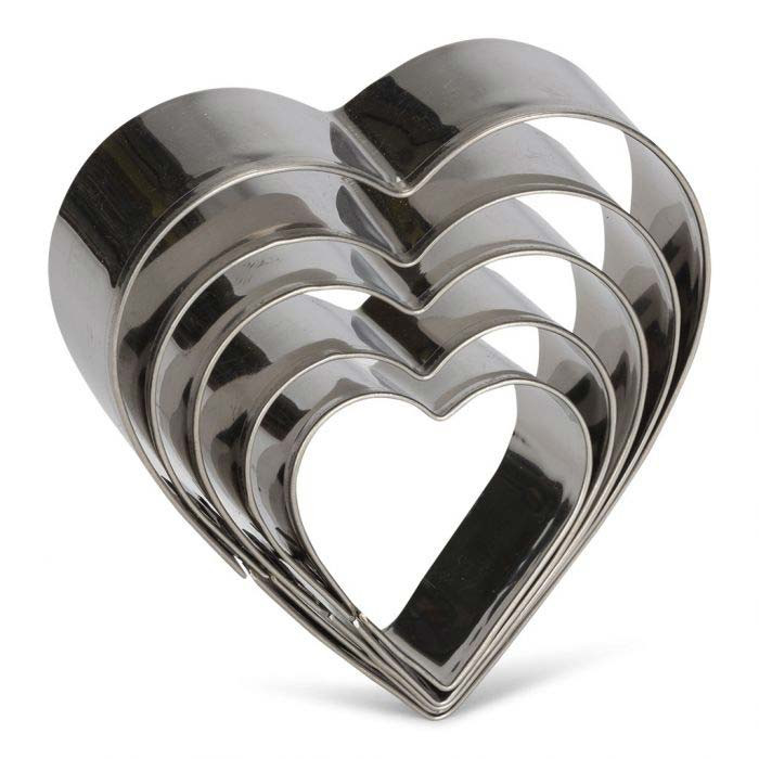 Dessa hjärtformade utstickare från Patisse är perfekta för att skapa vackra bakverk och dekorationer med fem olika storlekar för variation och precision. Tillverkade i hållbart rostfritt stål med skarpa kanter för jämnt resultat.