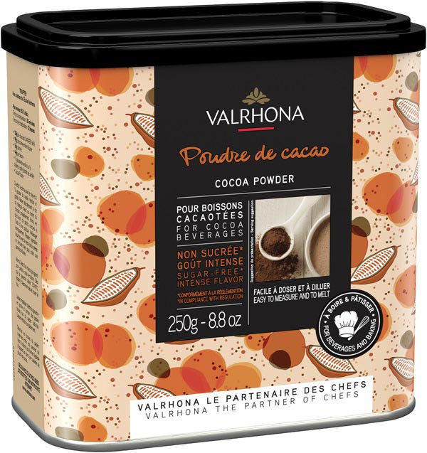 Valrhona kakaopulver är en högkvalitativ produkt tillverkad av 100% rent kakaopulver av bästa bönor. Med en extraordinär finess och intensiv smak passar detta kakaopulver perfekt för goda chokladdrycker och gourmetrecept. Använd det även för att förhöja smaken på chokladbollar, kladdkaka och andra bakverk och desserter med choklad. En lyxig och intensiv chokladupplevelse för alla chokladälskare och finsmakare!
