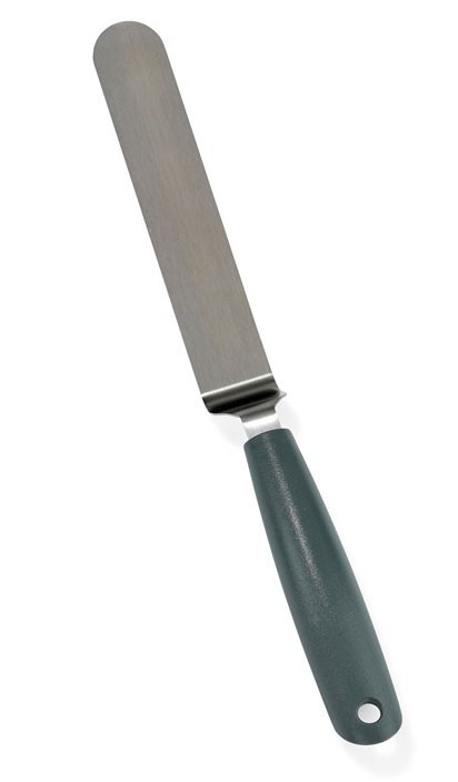 Den vinklade paletten från Funktion är tillverkad av stål med ett bekvämt handtag i grå plast. Den är ett oumbärligt redskap för dekoration av tårtor och spridning av frosting på tårtor och kakor. Vinklingen på bladet ger dig möjlighet att arbeta utan att din hand störs. Dessutom kan paletten även användas som en praktisk stekspade!