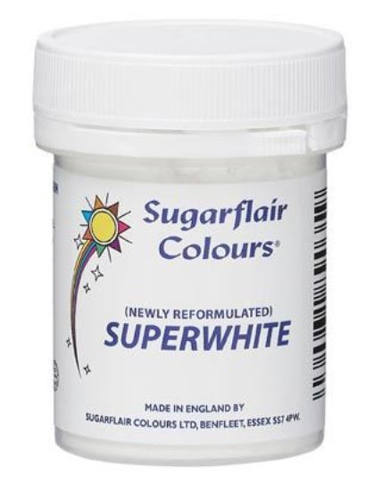 Detta super vita färgpulver är perfekt för att göra din sockerpasta eller marsipan vitare, ta bort den gula tonen och skapa ljusare bakverk. Pulvret kan användas för att färga sockerpasta, marsipan, smörkräm och choklad, och kan blandas med alkohol eller vatten för att skapa en målarfärg.