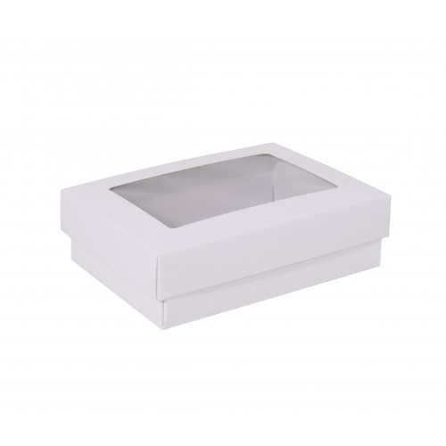 Denna vit pralinask med fönster är perfekt för förvaring och leverans av dina praliner. Varje ask är tillverkad av kartong med ett elegant plastfönster. Att ge bort hemmagjorda praliner i denna ask är en fin gest.