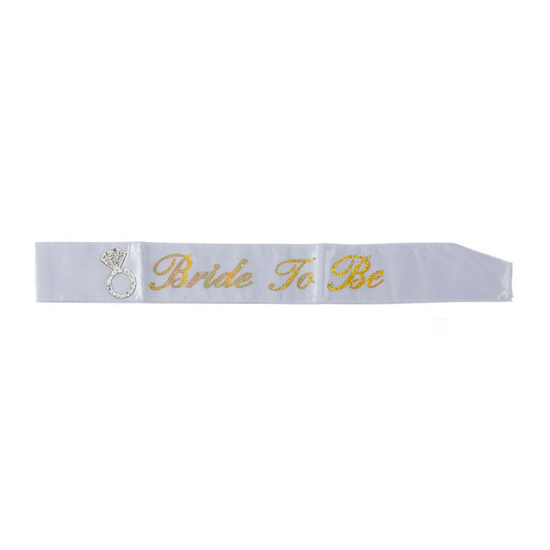 Detta vackra vitt ordensband eller sash med texten ”Bride to be” i guldig färg är perfekt för den blivande bruden att bära under sin möhippa. Med en elegant design och en diamantring är detta ett måste för en lyckad möhippa!